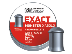 ΒΛΗΜΑΤΑ JSB EXACT 4.52mm / 400, Monster, (0,870g / 13.43gr)-Redesigned Χαρακτηριστικά: Νέο σχήμα για καλύτερη ακρίβεια! Σύμφωνα με το όνομά του είναι το βαρύτερο διαθέσιμο σφαιρίο. Το βάρος έχει επιλεγεί για να ταιριάζει με τα πιο ισχυρά αεροβόλα που διατίθενται σήμερα στην αγορά. Με ένα τέτοιο συνδυασμό μπορείτε να πάρετε μια πολύ υψηλή ισχύ που…